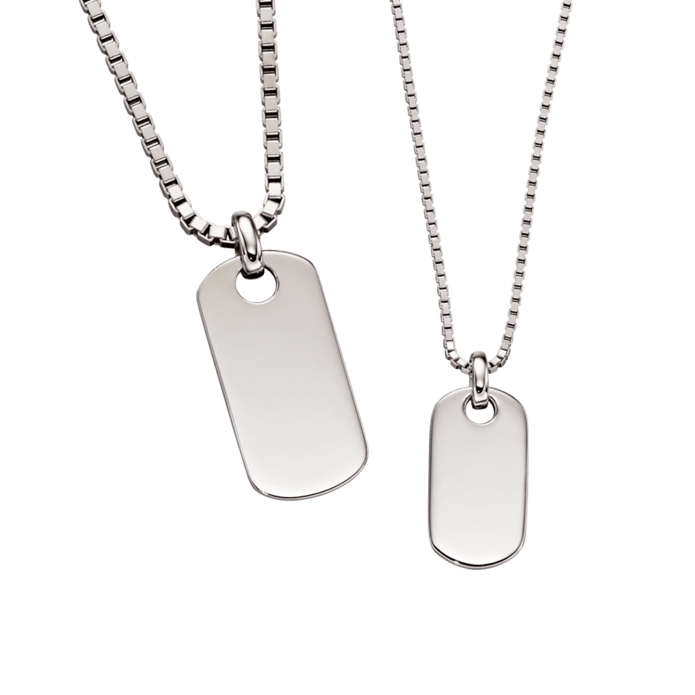 A stunning Father’s Day gift that can be shared between father and son, our Daddy & Me ID Tag Necklace Set is made from quality sterling silver, with a sturdy chain and a solid tag that can be personalised using our free engraving service.