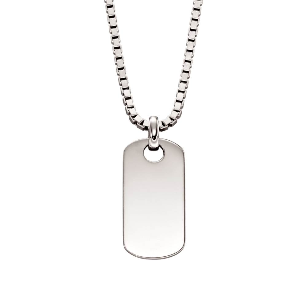 Whether you buy our Otis Men’s Tag Necklace to match our men’s tag bracelet, or would prefer to buy it as a standalone gift for Father’s Day, our men’s ID tag necklaces are made from solid sterling silver, with a sturdy chain and tag that is fully engraveable. Our ID tag necklaces for men can be personalised by up to eight characters. This enables you to add significant words or numbers to make your Father’s Day present even more special and unique. Alongside our free engraving service, we can also supply a complimentary gift bag and box, together with free UK delivery. For a perfect Father’s Day gift, choose Little Star Jewellery for stunning ID tag necklaces for men.