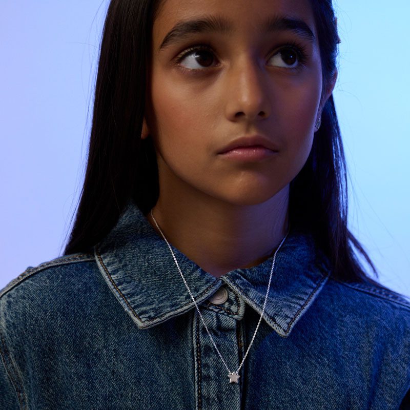 This Stylish Sterling Silver Mother of Pearl Star Necklace is the ultimate accessory for super cool kids! Crafted with a delicate sterling silver chain, the centrepiece features a shimmering mother of pearl pendant that gleams with iridescent hues, adding a touch of elegance and fun. Perfect for any special occasion, this necklace makes an ideal gift for a girl’s birthday, making her feel extra special and stylish. Paired with a matching star charm bracelet, this set creates a coordinated and fashionable look that will surely capture attention. Comfortable and chic, this necklace and bracelet set is a must-have for young trendsetters!