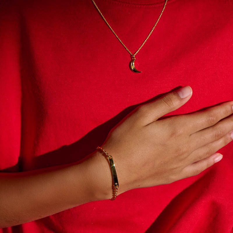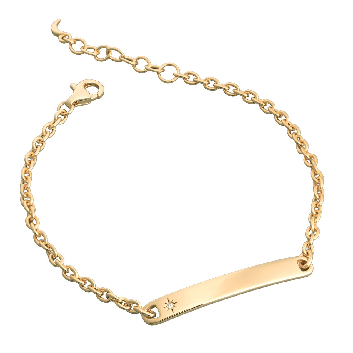 Meet Aurora, our first luxe 9ct gold bracelet β where timeless elegance meets modern charm. Beautifully crafted in 9ct yellow gold, this delicate ID bracelet features a shimmering diamond and a sleek engravable plate, perfect for personalisation.