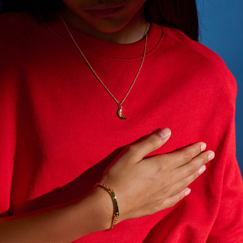 Designed to grow with her, Aurora comes with an adjustable chain to fit both girls and ladies comfortably. A dainty crescent moon tag adds a magical finishing touch, making it a meaningful gift she’ll treasure forever.