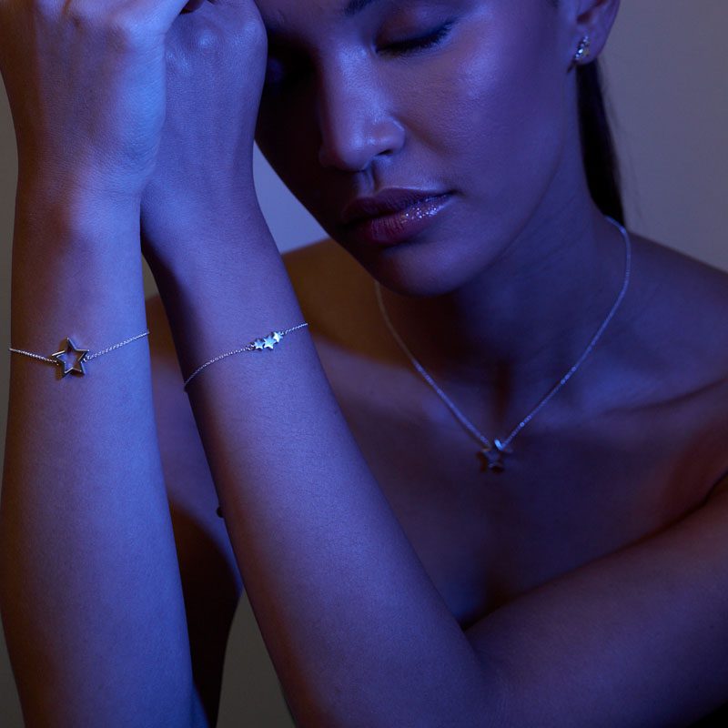 Delicate, modern, and effortlessly stylish — the Billie Sterling Silver Triple Star Bracelet is the ultimate on-trend accessory. Featuring three dainty sterling silver stars on a fine chain, this bracelet adds a touch of celestial charm to any look.