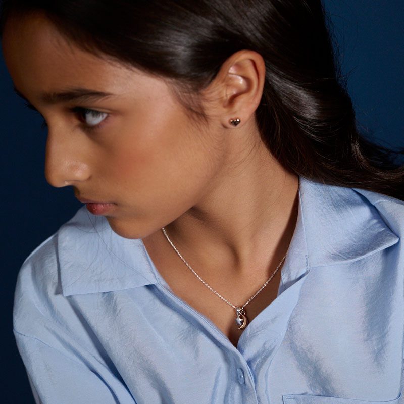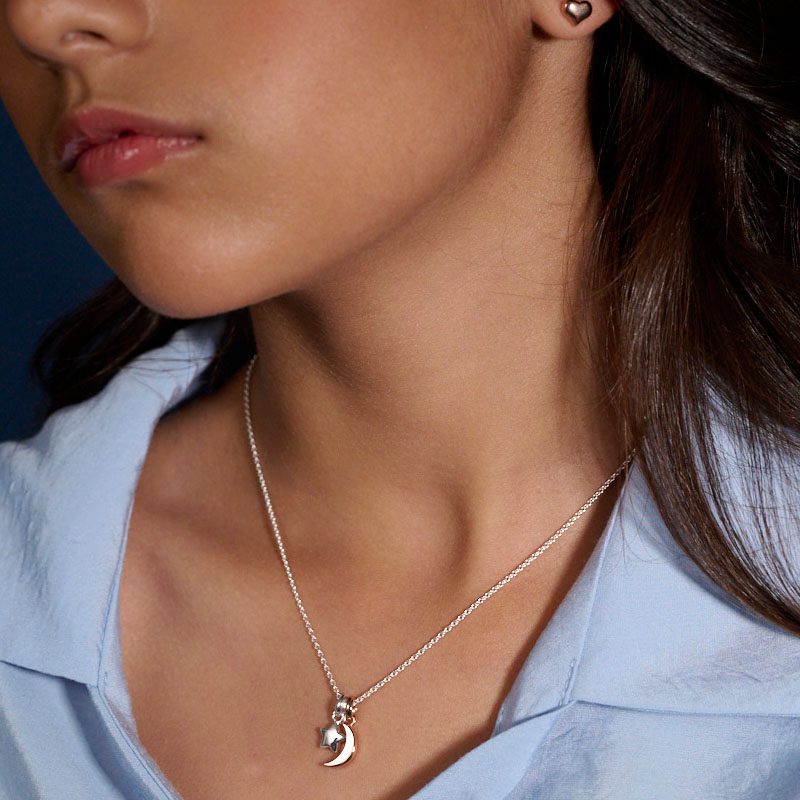 We normally only send Cosmo out for stars but for this sterling silver necklace we sent him to the moon and back with Rose Gold plated detail. With Free Gift Box & Bag and Free UK Delivery.
