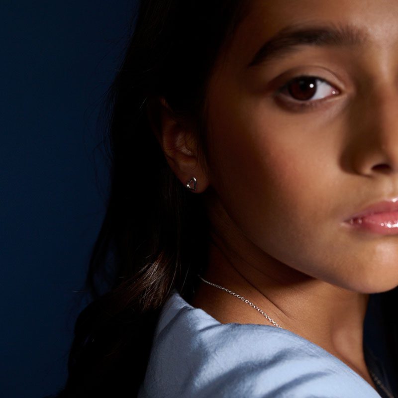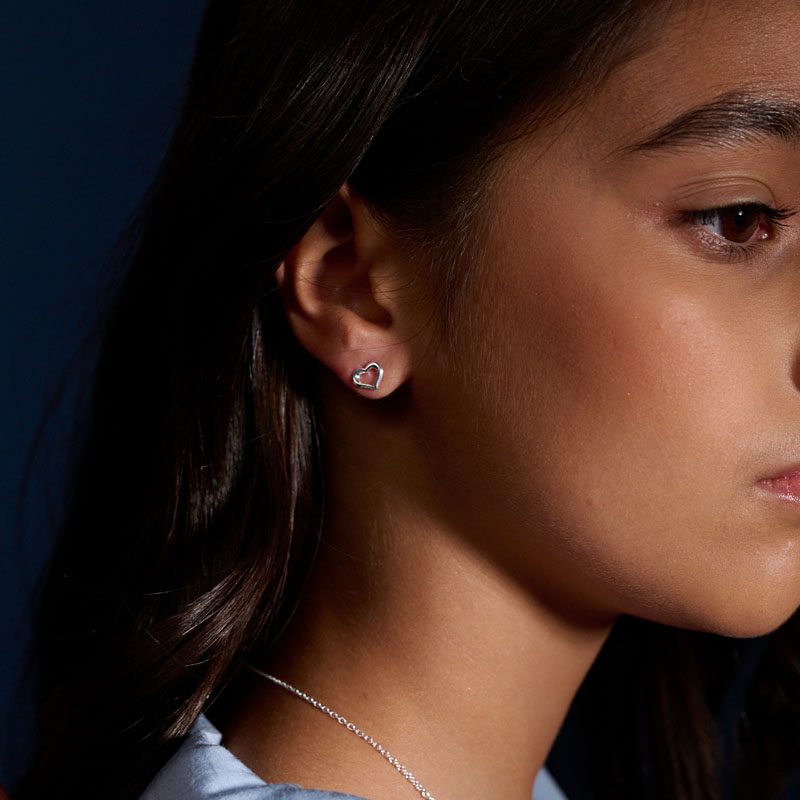 Our new silver open heart earrings are perfect for all ages, but especially as that first pair of earrings for girls. They also make a great accompaniment to our Lola Open Heart necklace to make it the perfect matching necklace and earrings set for girls.