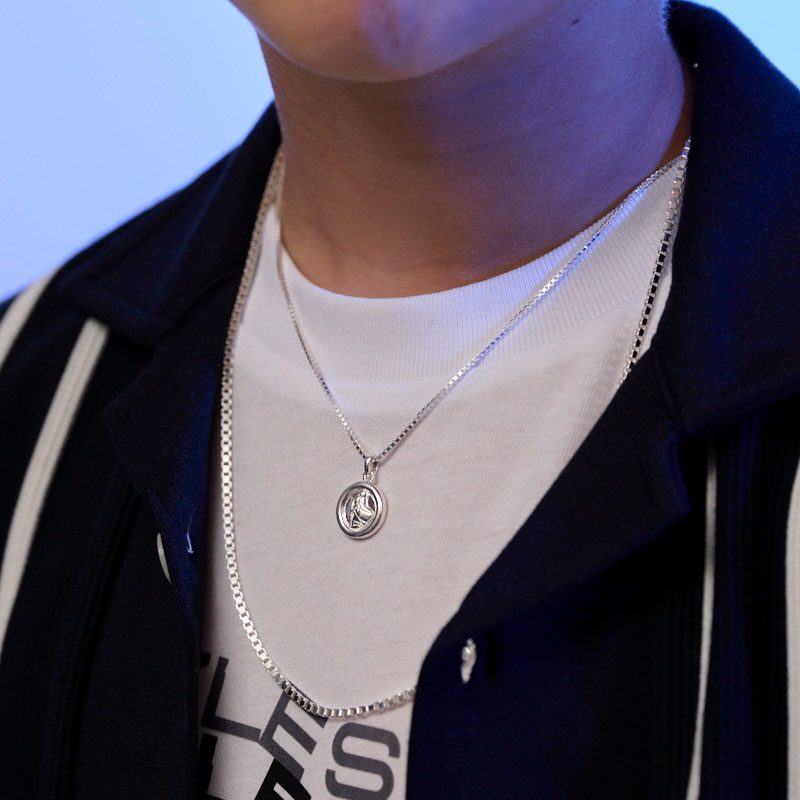 This necklace silver St Christopher pendant, a symbol of love and protection. Personalised engraving available.