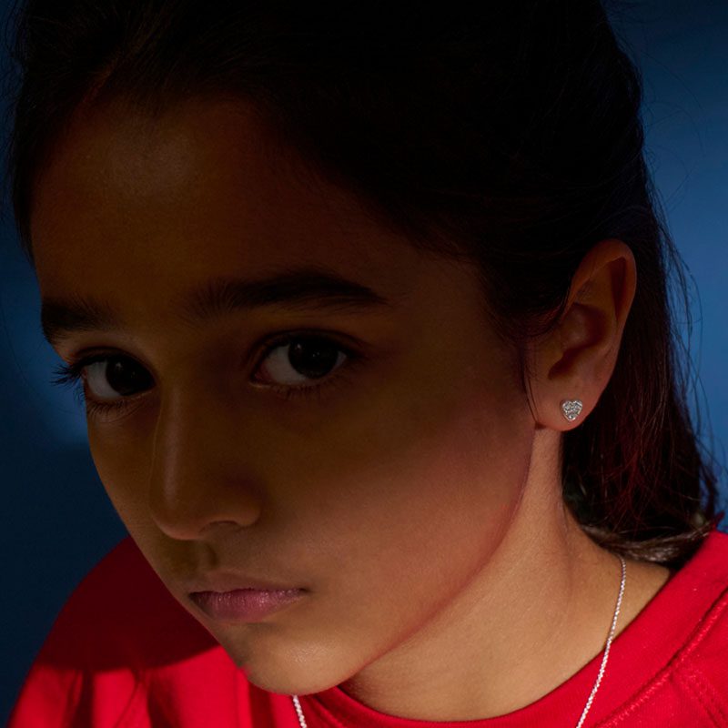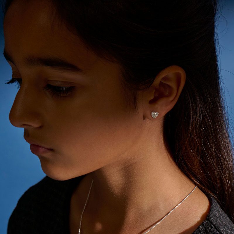 Elevate your shine with the Orion earrings – the perfect partners to our beloved Sirius necklace. These elegant heart-shaped studs are crafted in solid sterling silver with a radiant platinum plating, and set with an incredible 28 pavé diamonds for extra brilliance.