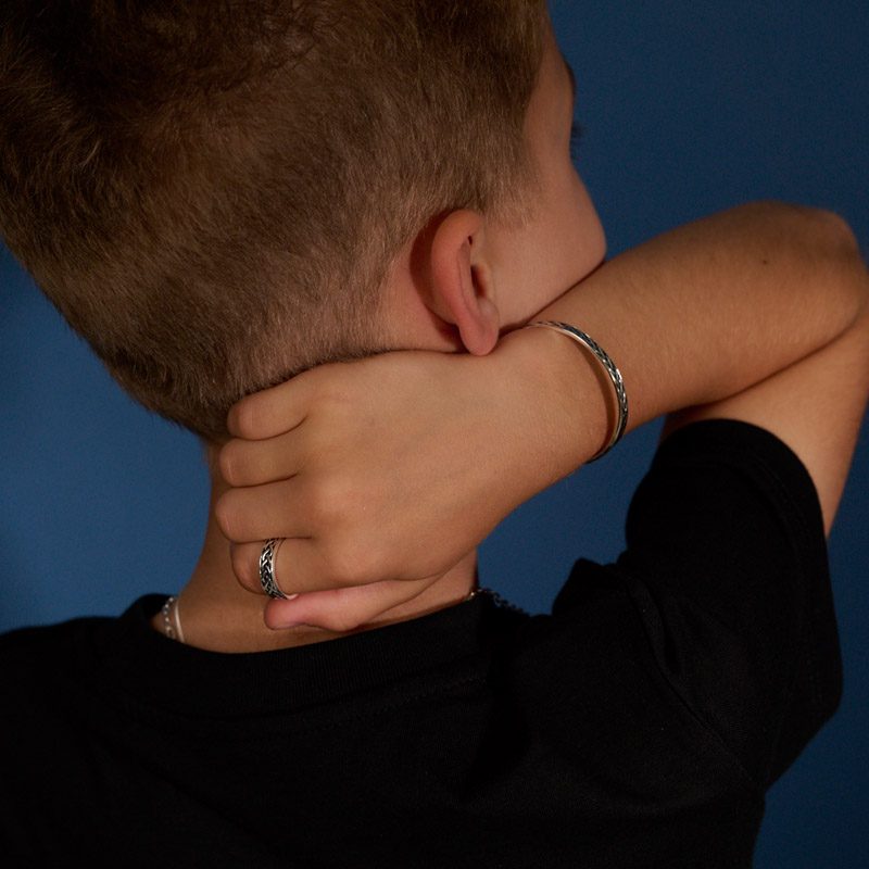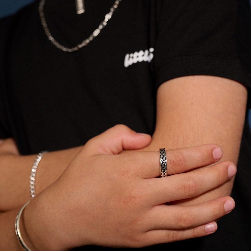 This chunky oxidised adjustable band ring is perfect for boys who want to make a statement with their style while enjoying the lasting quality of sterling silver.