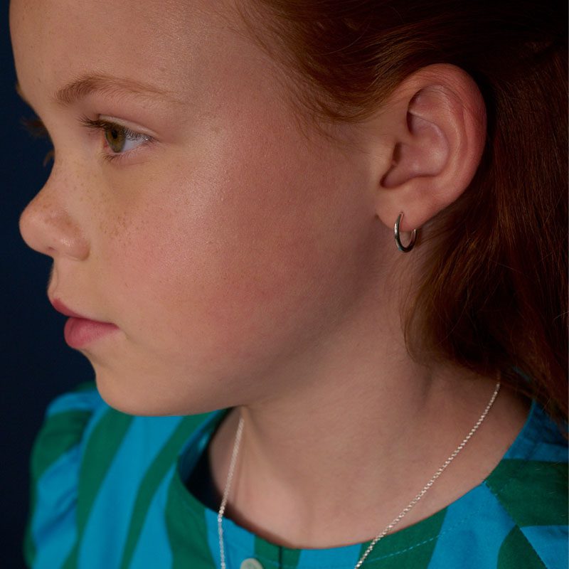 Romy – our sterling silver hinged hoops are the perfect choice for girls who’ve just had their ears pierced and need a quality pairs of kids earrings. These sterling silver sleepers are ideal for everyday wear, with their simple yet elegant design. Comfortable for prolonged wear, these earrings are the perfect choice for girl of all ages.