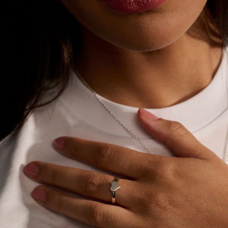Crafted in high-quality sterling silver, the Sky ring brings a modern twist to a timeless symbol. Its delicate heart design evokes connection and quiet confidence — a perfect balance of softness and strength.