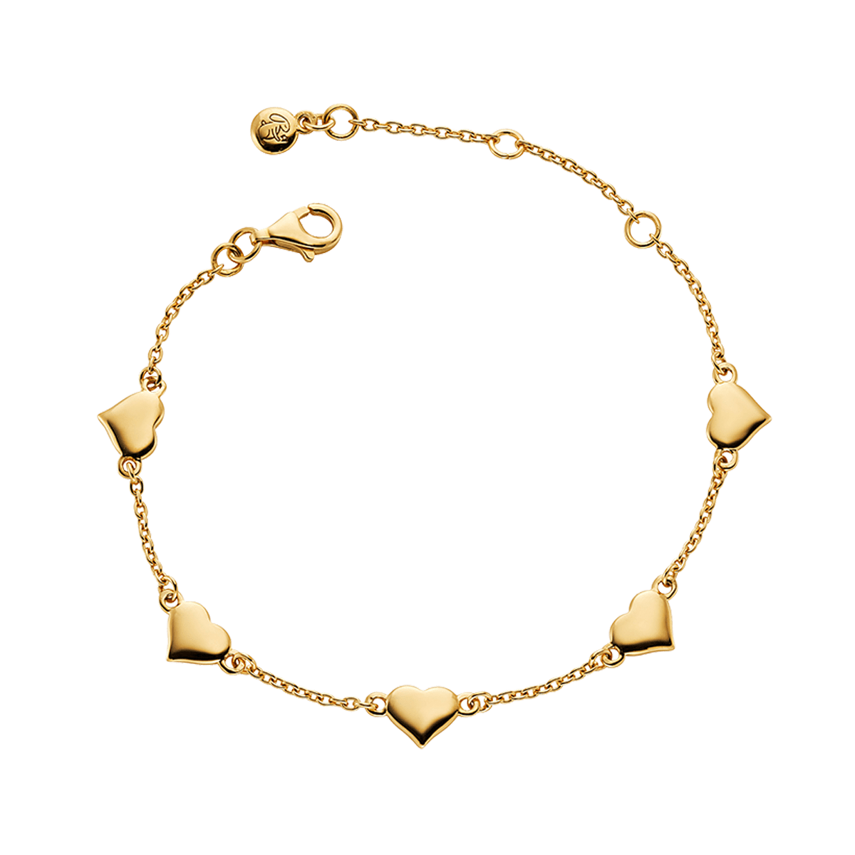 5 Heart Station Style Gold Plated Bracelet – A Symbol of Love & Elegance